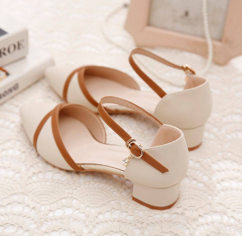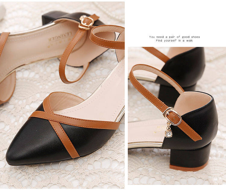 2020 New Summer Straight-Line Buckle Chunky Heel All-match Color Matching Shoes