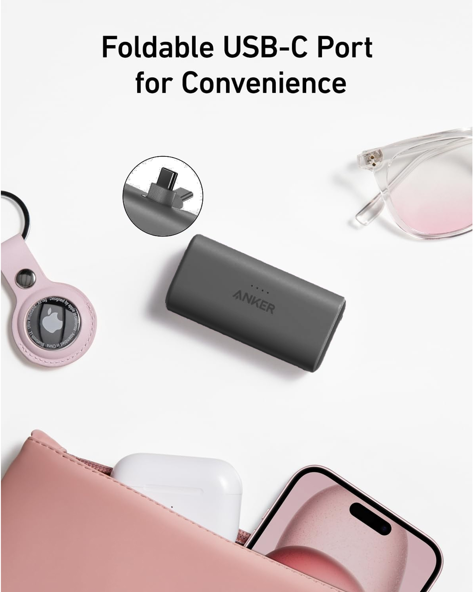 with Built-in Foldable USB-C Connector Nano Power Bank 5,000mAh Portable Charger (A1653)