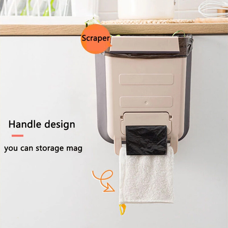 1PCS Multifunction Wall Mounted Folding Waste Bin Kitchen Cabinet Door Hanging Trash Bin Garbage Car Trash Can Wall Mounted Foldable Cleaning Towel Holder Rack Shelf