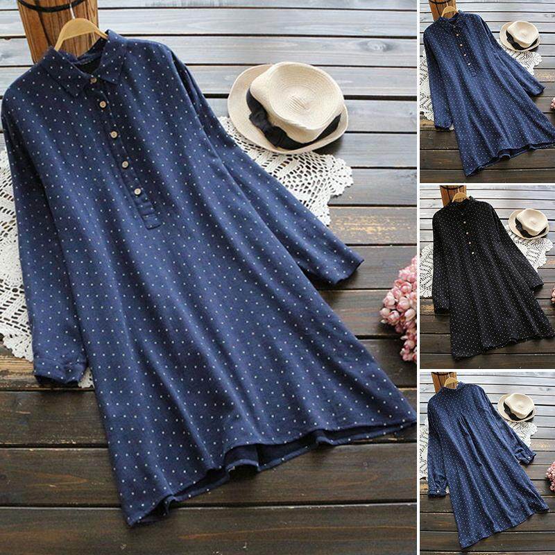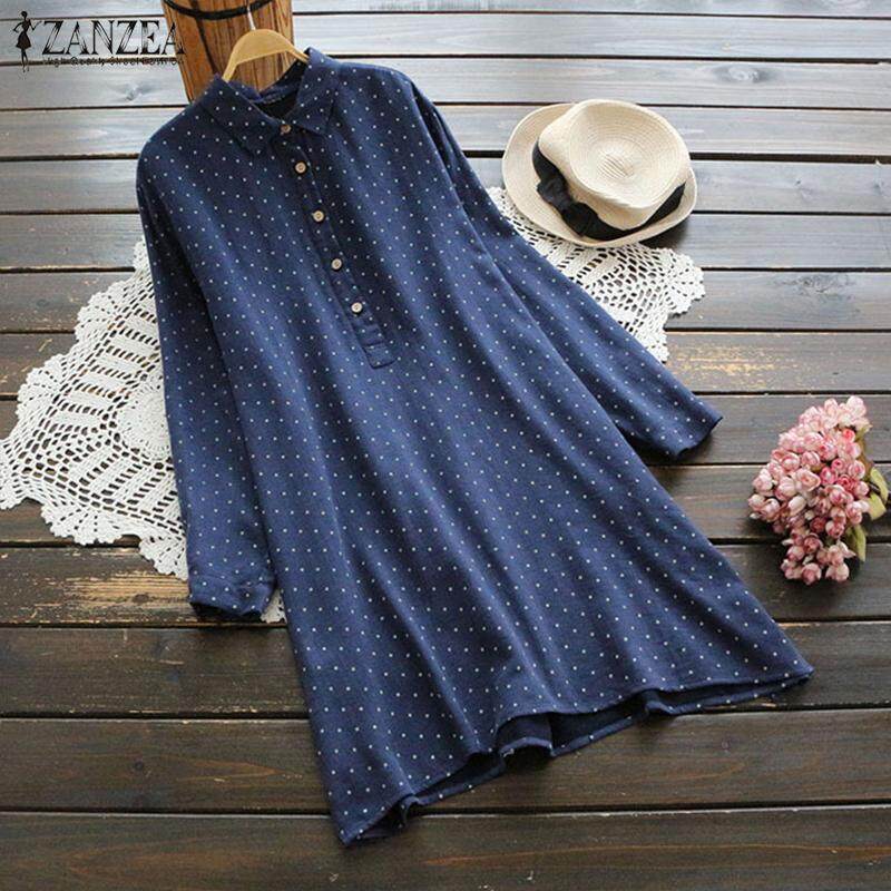 Muangee Women Polka Dot Oversize Vintage Casual Loose Long Sleeve Tops Blouse T-Shirt ZANZEA