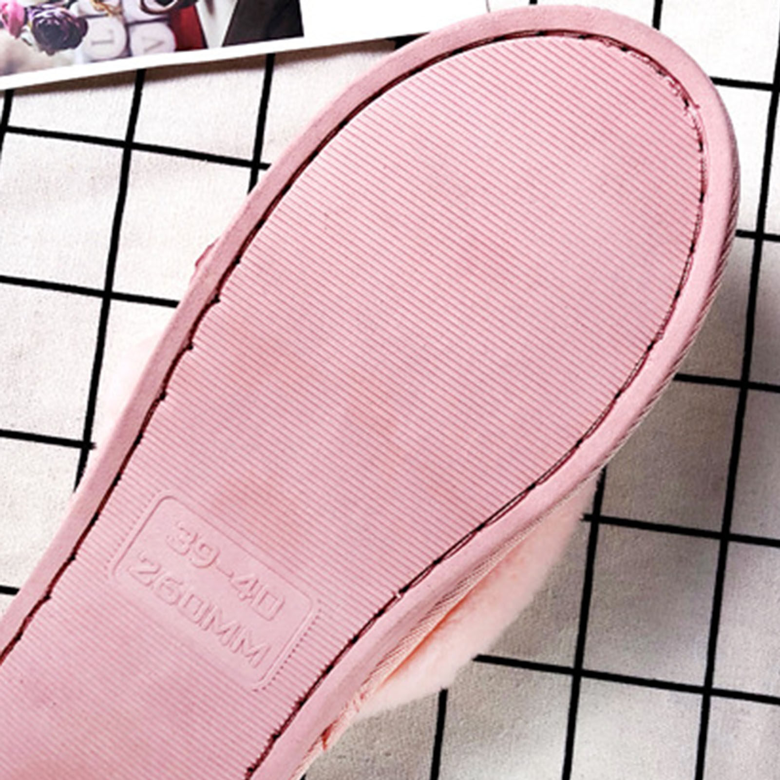 Broadfashion Autumn Winter Women Home Flip Flops Faux Bunny Fur Fluffy Anti-Skid Slippers
