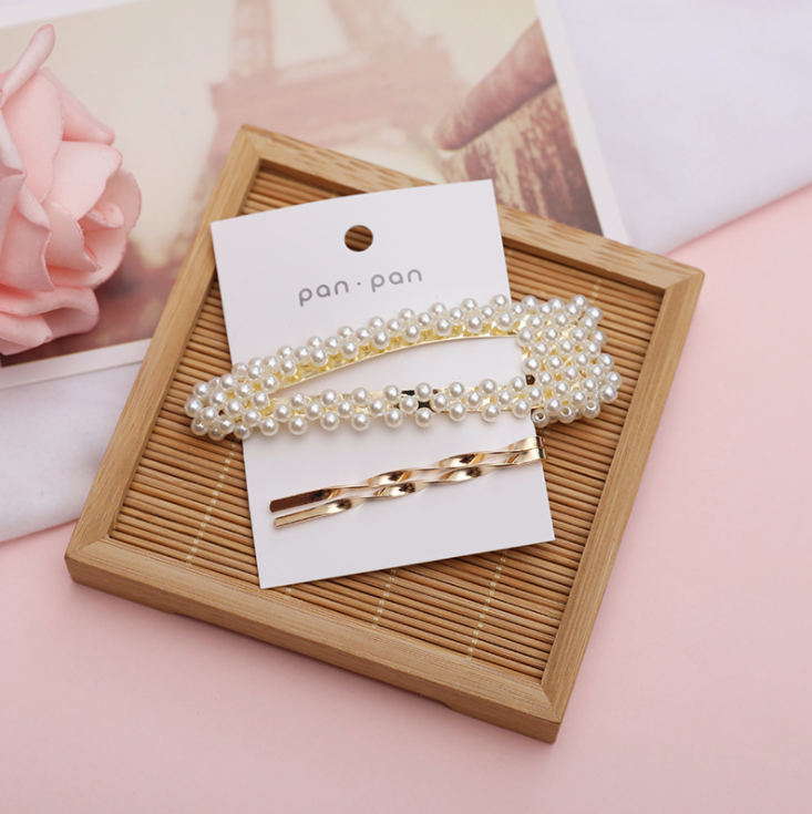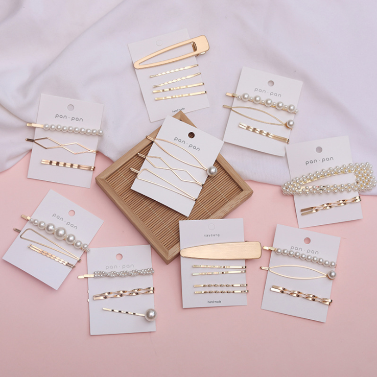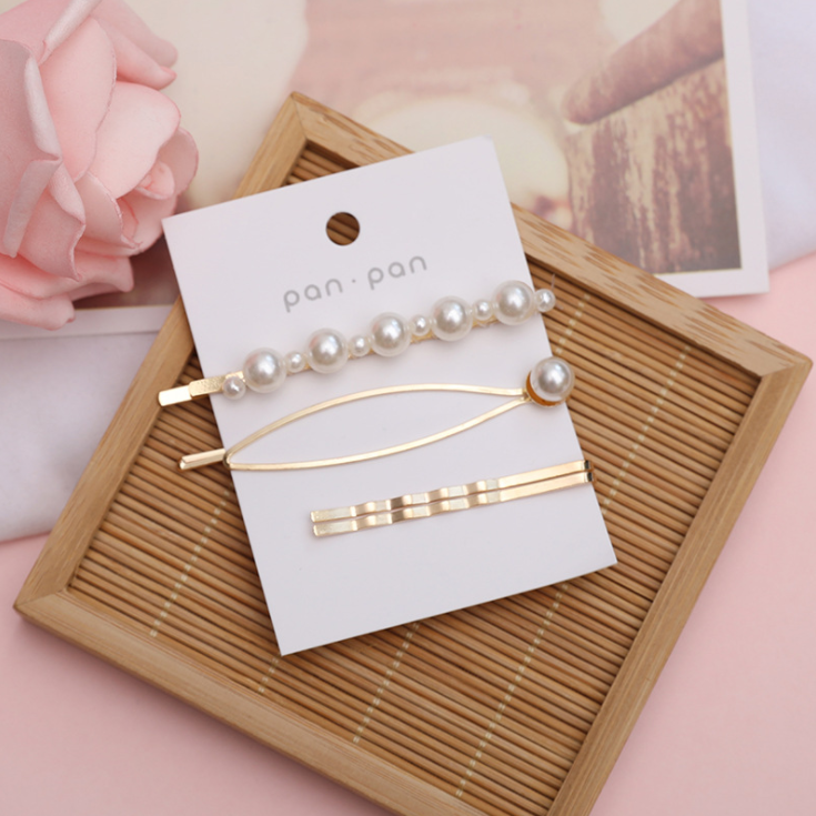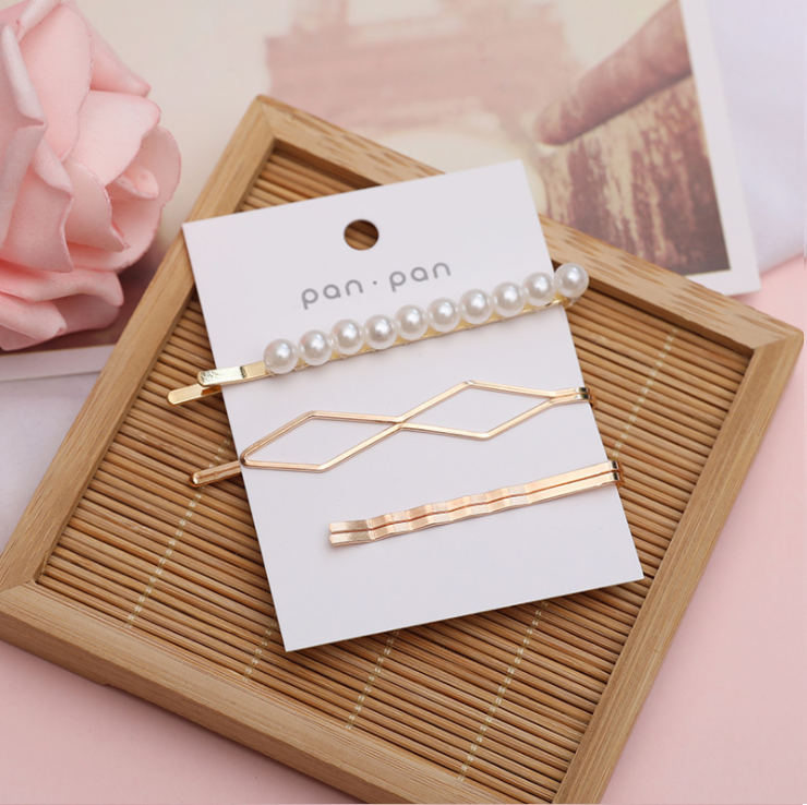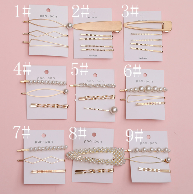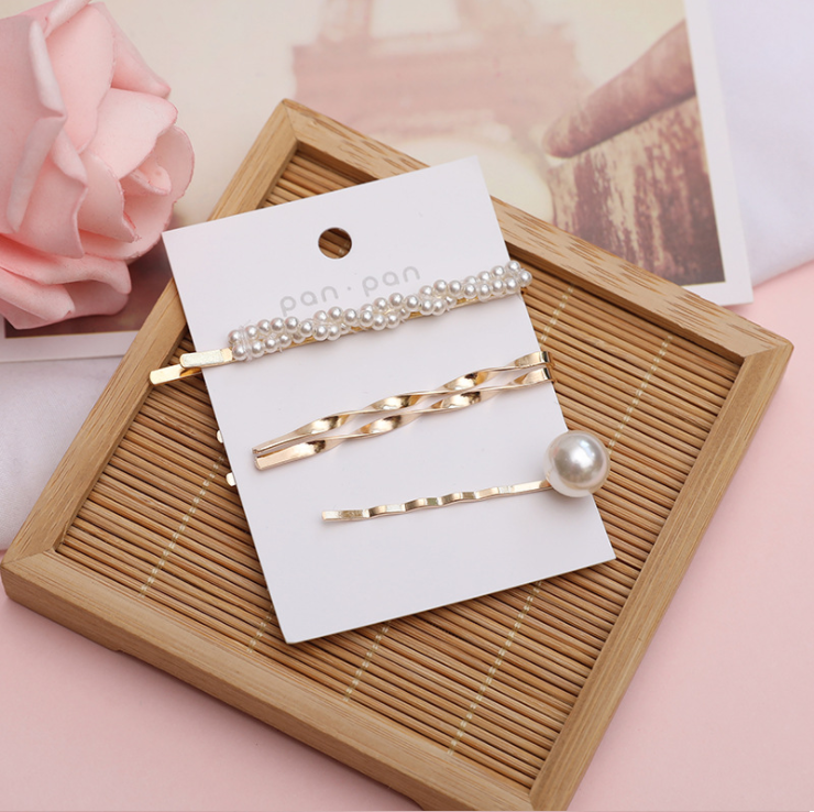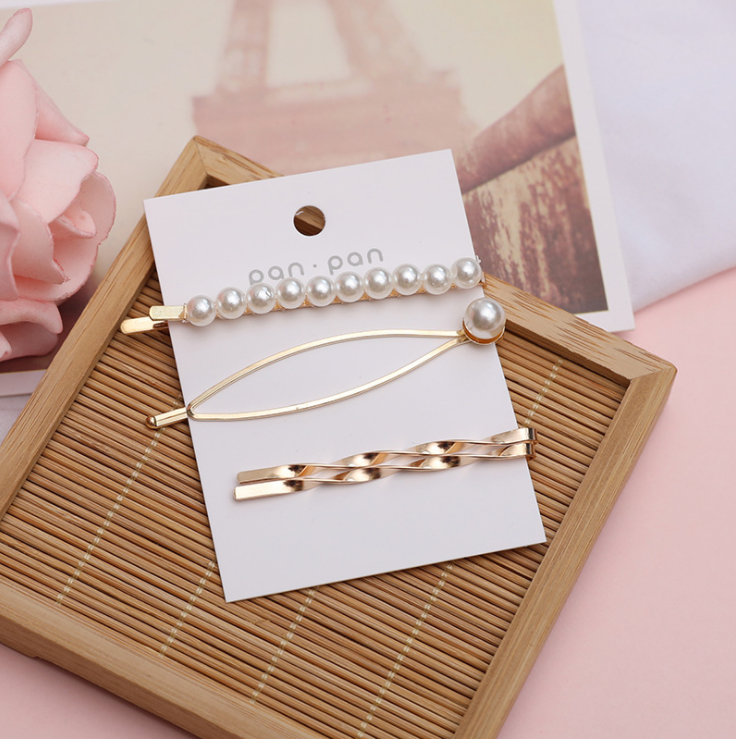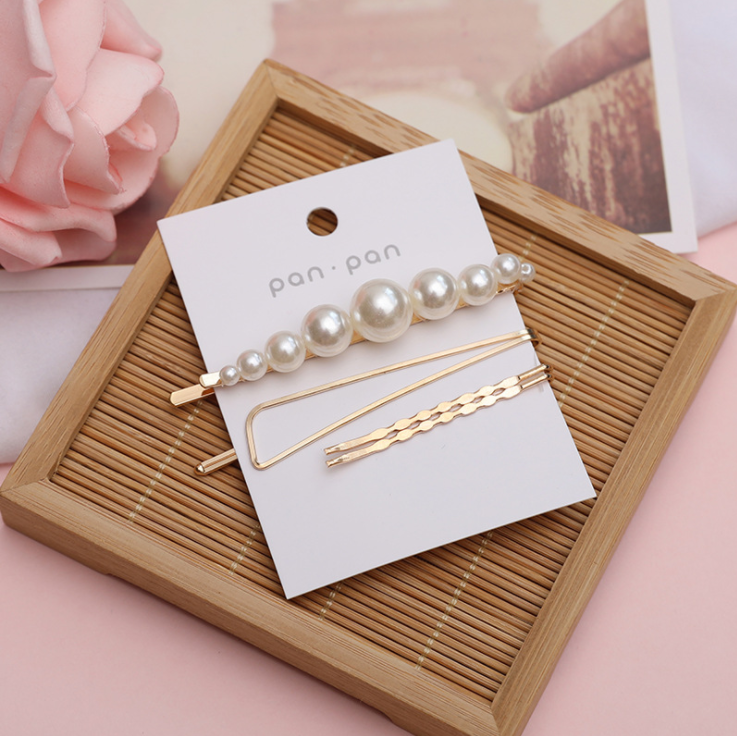 [SG] 3-4pc Pack Korean Metal & Faux Pearl Hairpin Set, Minimalist Sweet Hair Clip Side Clip Hairpin Hair Accessories Hair Barrettes Set