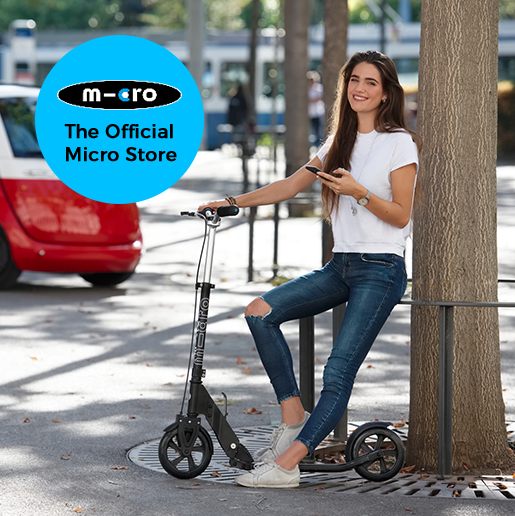 If you need a practical, comfortable scooter for your way to work or university, the Micro Downtown Black is just the thing for you. It can be folded up with your foot in seconds so there is no need to bend down. This scooter can be taken along conveniently in the bus, train or metro. With its lightweight frame of just 6 kg, it is extremely compact and robust. The large wheels and the wide deck allow a pleasant ride on any kind of surface. The wide handlebar and handbrake further enhance driving comfort and safety. The ideal scooter for daily use.