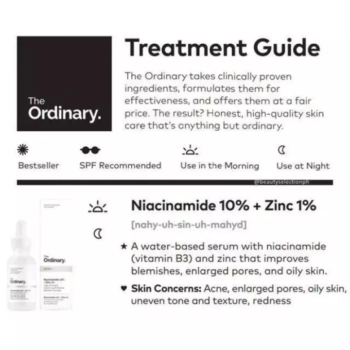 Tattie【READY STOCK】 The Ordinary Niacinamide 10% + Zinc 1% 30ML Eye Face Serum Oil Balance Reduce Skin Blemishes Whitening Moisturizer Brighten Skin Color Essence 30ML