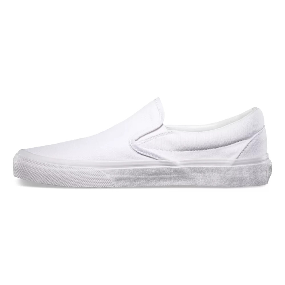 The Classic Slip-On features sturdy low profile slip-on canvas uppers, padded collars, elastic side accents, and signature rubber waffle outsoles.