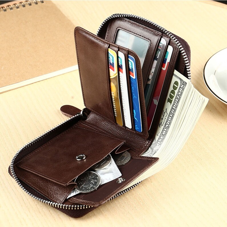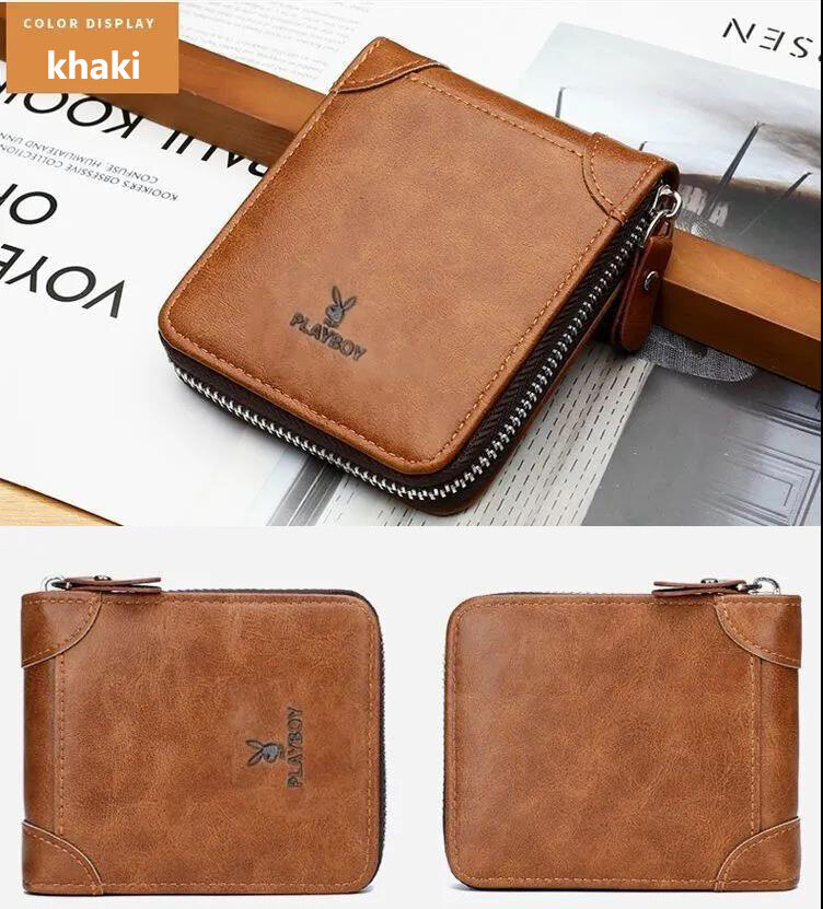 Men Wallet Fashion Short Wallet Leather Bifold Zip Wallet Coin Purse Card Wallet for Men