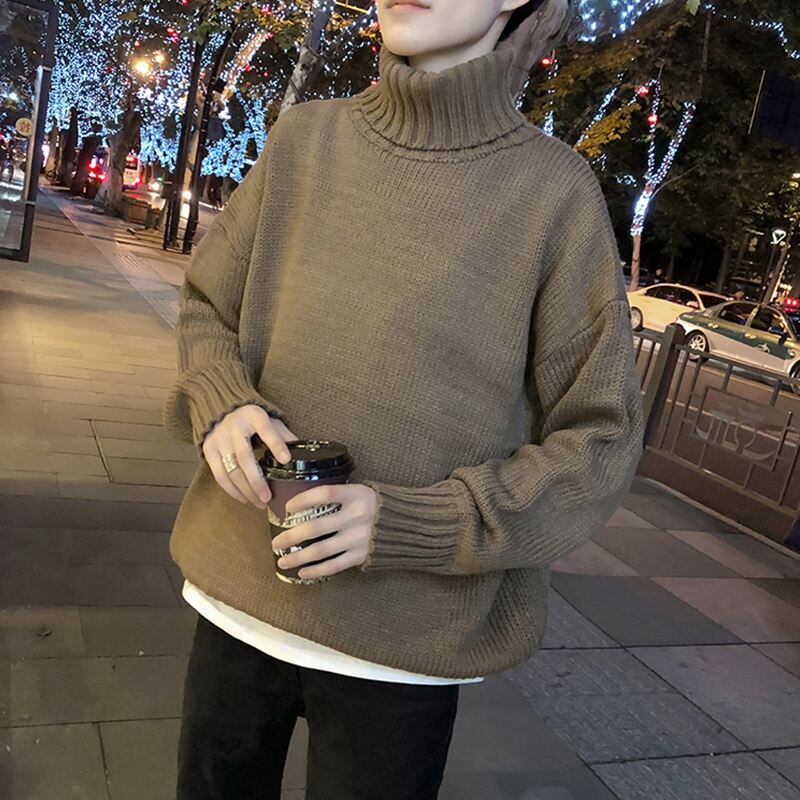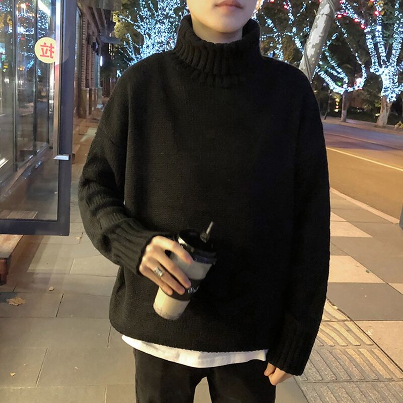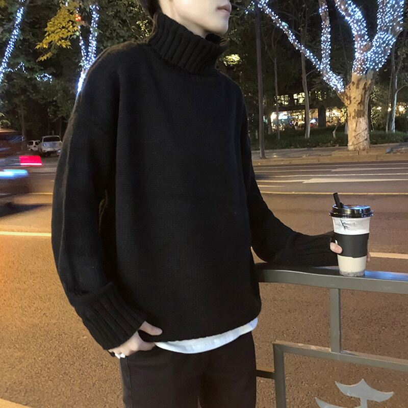 Hong Kong Style Turtleneck Sweater Men's Korean Style Fashion Man Loose Student Trendy Personality Handsome Pullover Harajuku Idle Style Ins