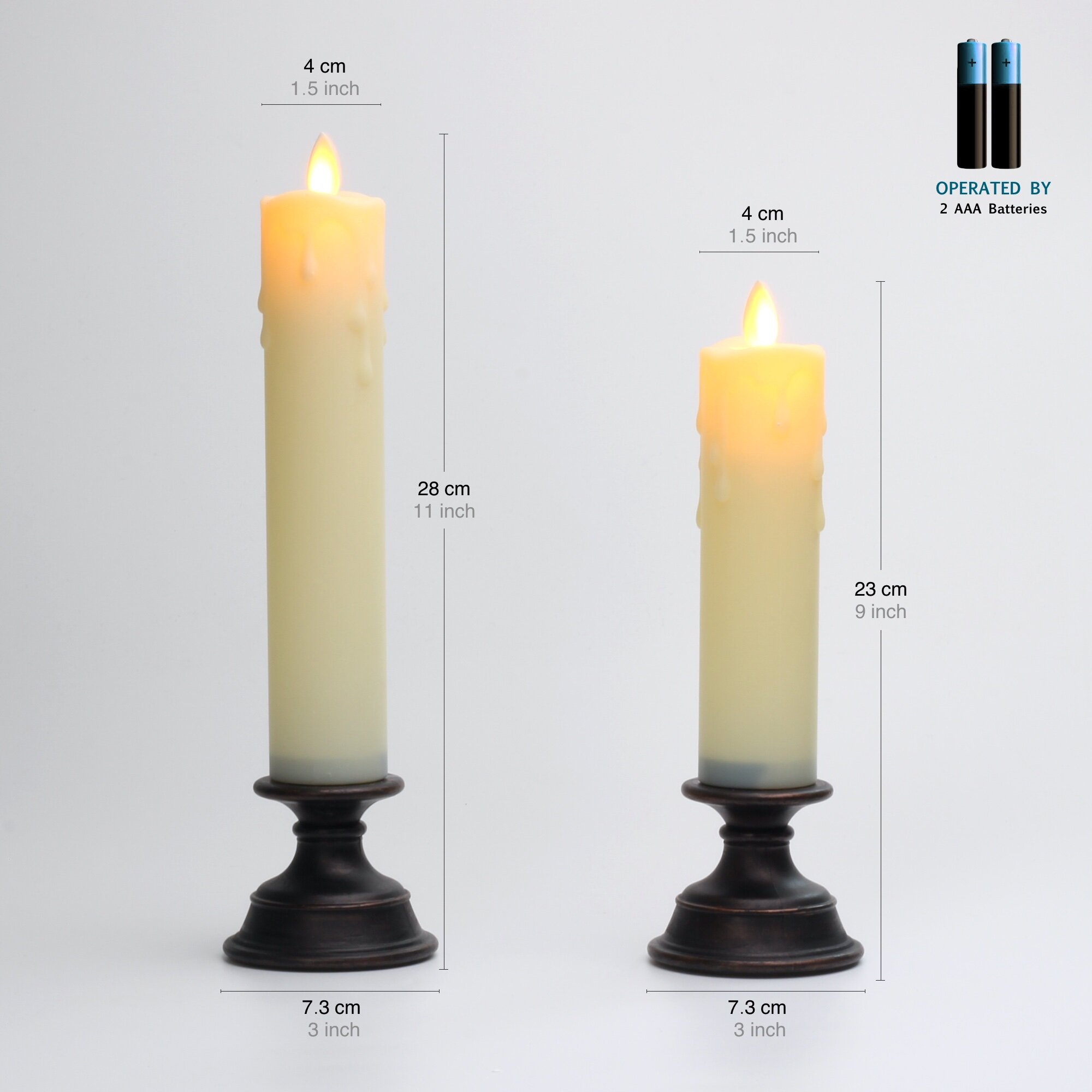 Flickering Flameless Warm White LED Taper Candles create clean, romantic, safe and elegant atmosphere without any mess or hazardous flame. They’re perfect for wedding, parties, bar and restaurants, Festival celebration, birthday, even your daily life.