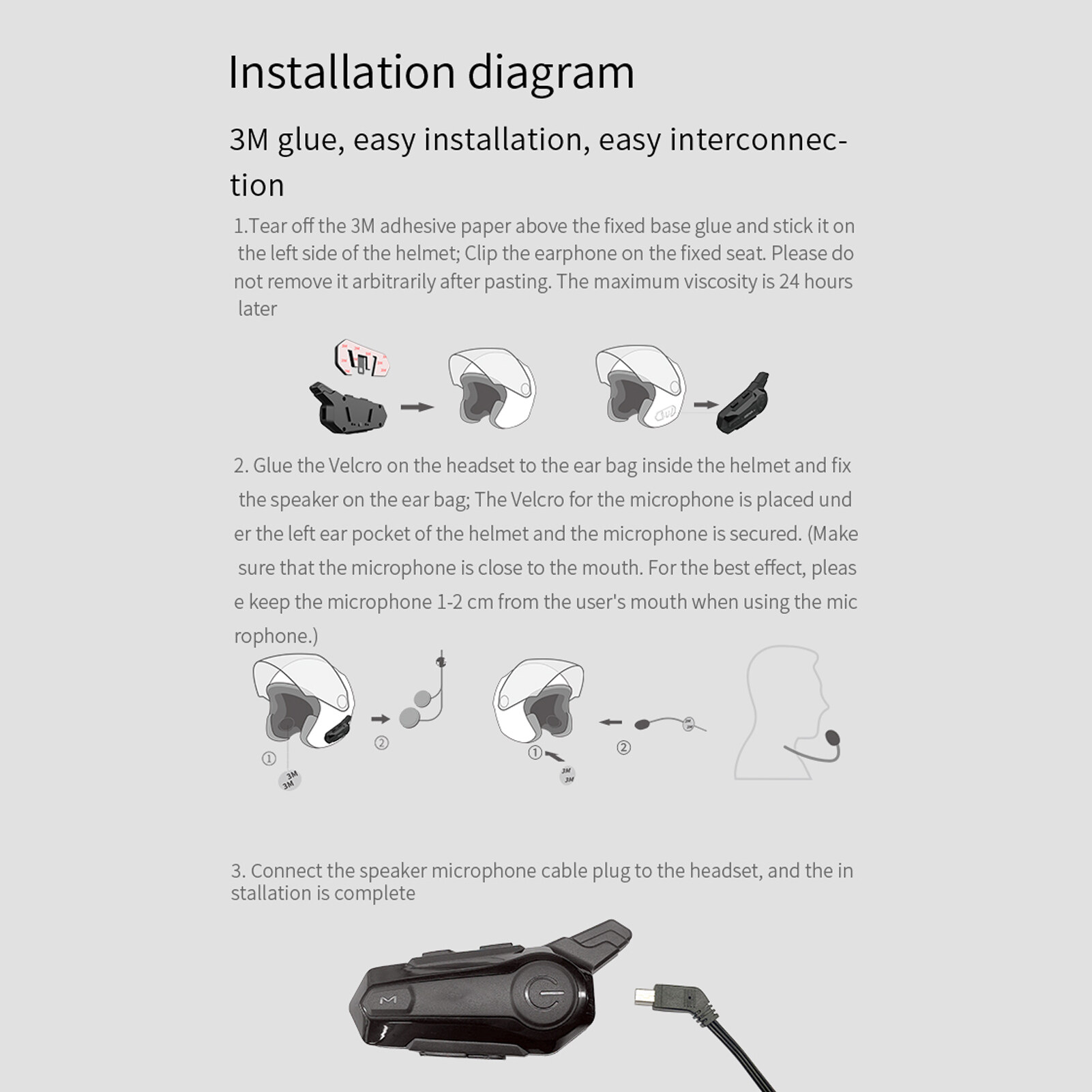 1.TWS motorcycle headset for smooth communication, clear intercom, two-person intercom/CVC noise reduction/6 level waterproof/BT 5.0.