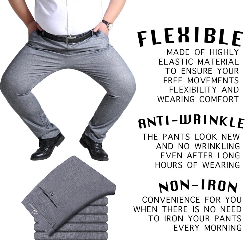 READY STOCK Big Plus Size Men Elastic Business Pants Non Iron Formal Office