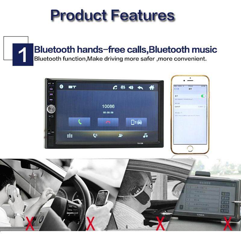 Features: Color: Black Model: 7012B 3rd Material: Plastic + Metal Screen type: TFT Screen size: 7 inch Resolution: 800x480 Power supply voltage: DC 12V Horn impedance: 4 ohms Maximum power: 50W x 4 Volume control: ±8 dB (bass 100HZ, treble 10KHZ) Function: Bluetooth, charger, MP3 players, radio tuner, touch screen, rear view 7'' HD TFT display screen With rear view function Support SD card, U disk play Any state of power failure memory function Built-in Bluetooth function, can match the smart phone Built-in radio AM / FM tuner, automatic search platform function Supports playback of AVI / JPEG / WMA / MP3 / format programs EQ sound control, stereo, left channel, right channel selection/Andriod /IOS Mirror Link Package : 1 x 7012B 3rd Car Radio Player 1 x Remote Controller 1 x Cables Kit 1 x Manual Note: This machine is 12V machine, not according to the 24V power supply