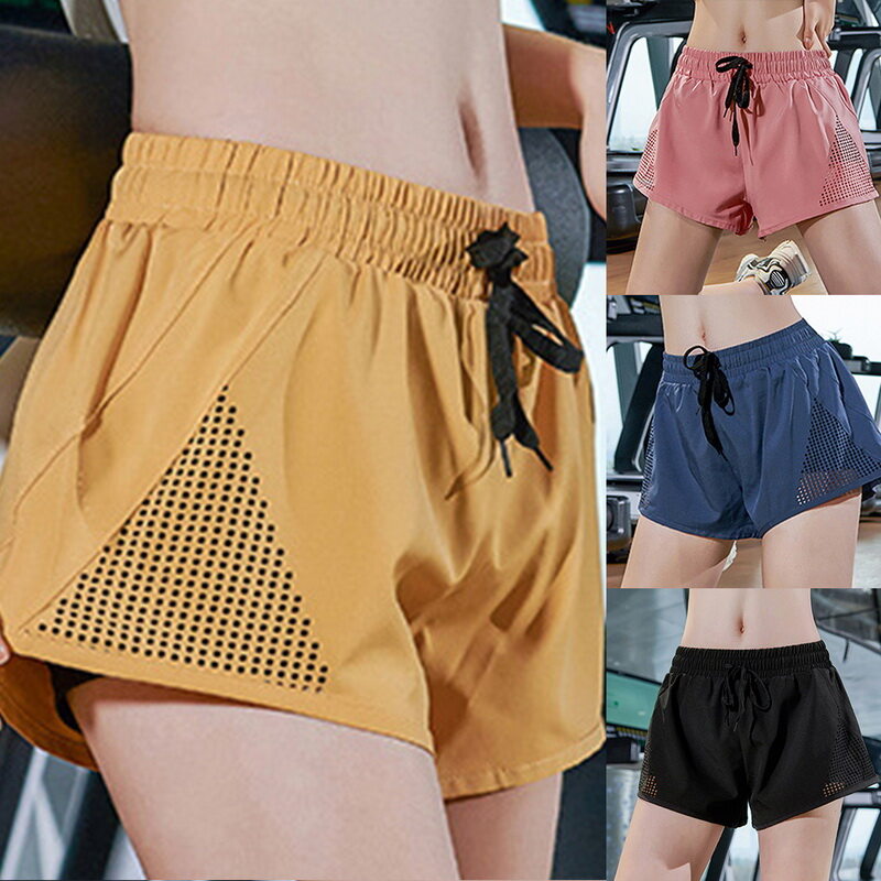 Loose shorts breathable and quick-drying stretch pants Anti-false lighting two-piece Yoga running women's fitness exercises