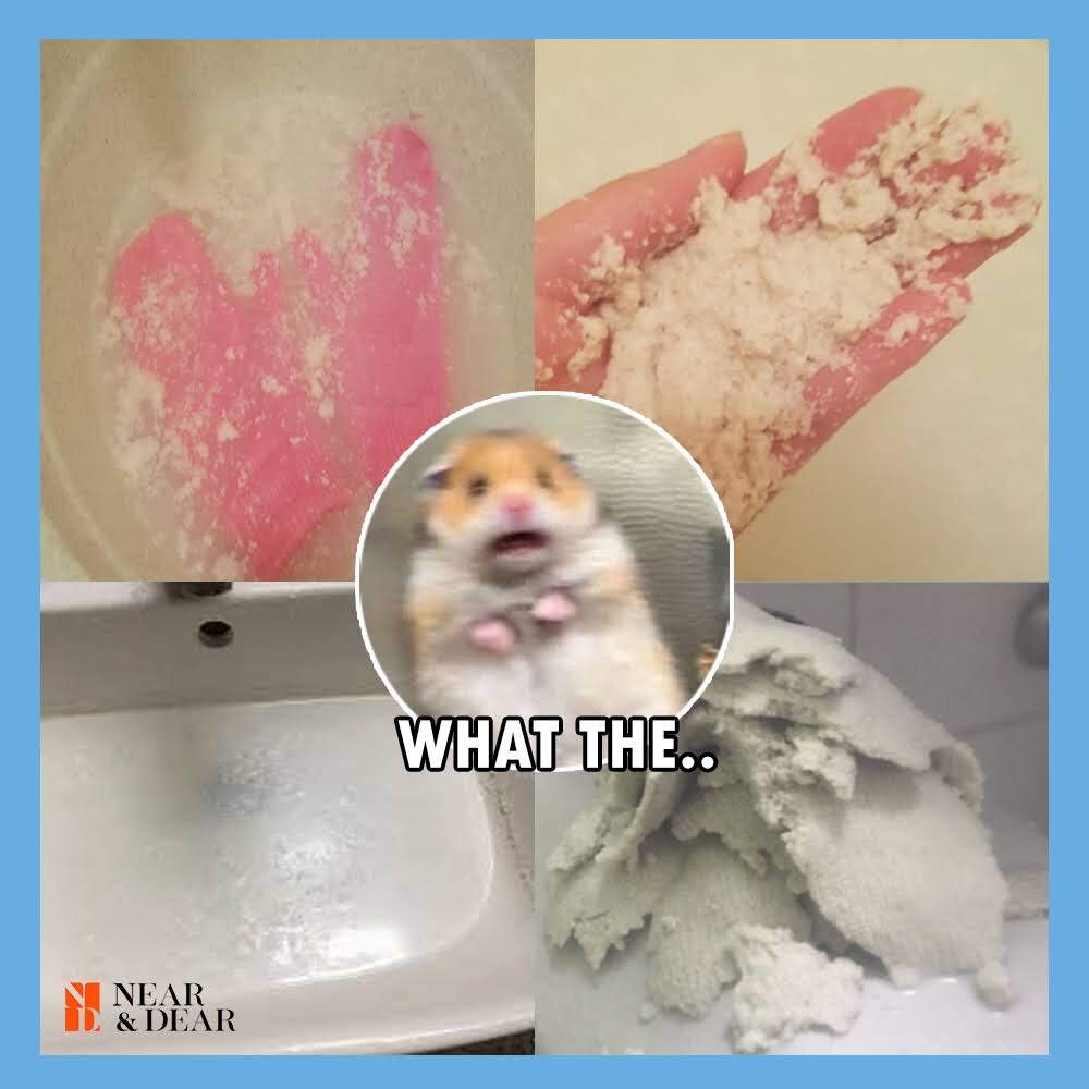 -The magic scrub gloves are made of natural fiber that are thinner than hair. It makes the dead skin cells in to a powder and dissolve it with soap. Put the glove into water and shake it to remove the dead skin cells.