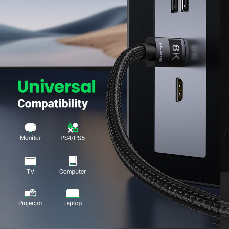 UGREEN HDMI 2.1 HDMI Cable 4K/8K 48Gbps Ultra High Speed Cord 4K120Hz/8K60Hz Support Dynamic HDR eARC Dolby Atmos HDCP Compatible with PS5 PS4 Xbox Roku TV HDTV Blu-ray Projector
