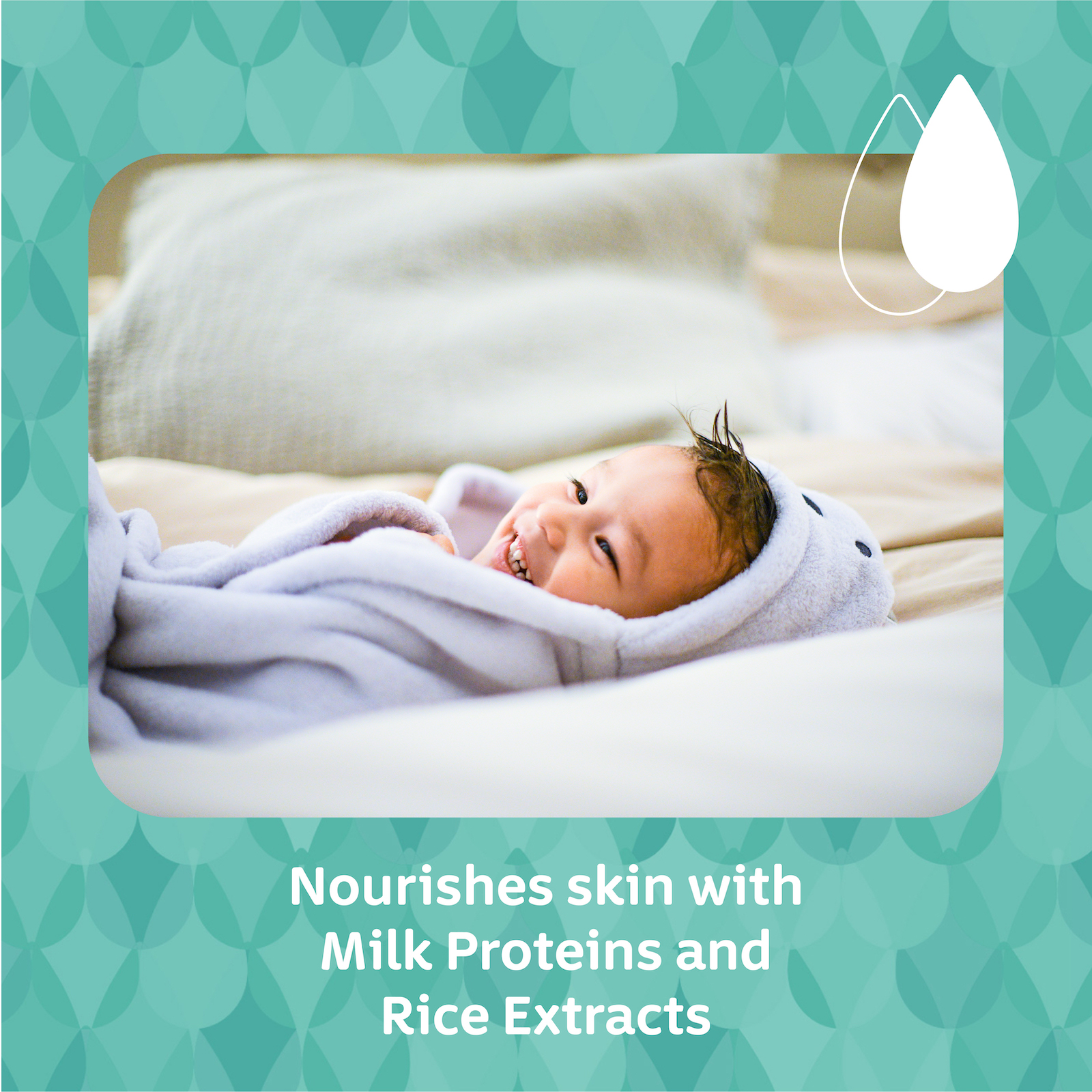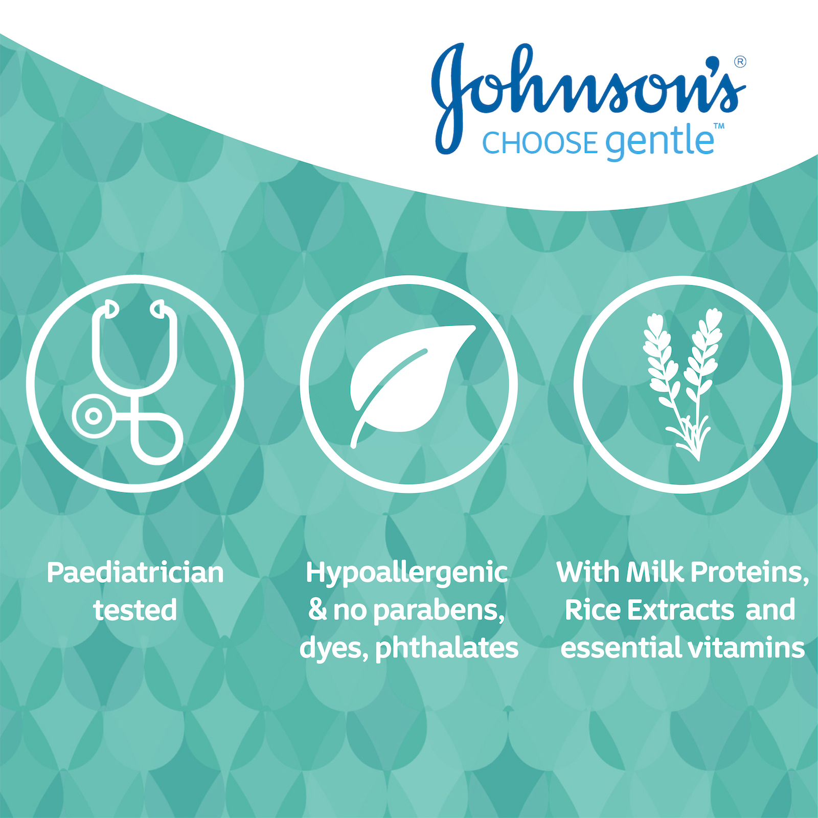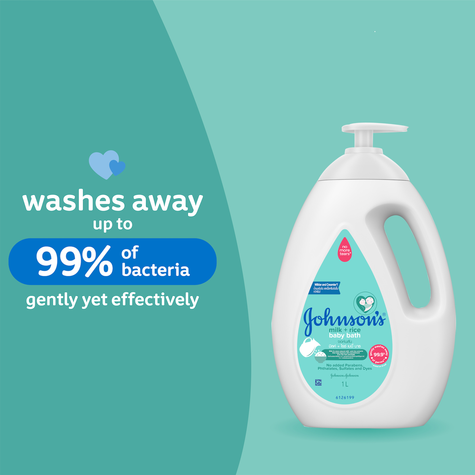 Johnson's® Milk + Rice bath with natural milk and rice extracts to help skin feel soft and smooth. Baby skin loses moisture more quickly than adult skin and still needs gentle care. We have specially designed these products with moisturizers to help keep babies’ skin nourished as they grow.