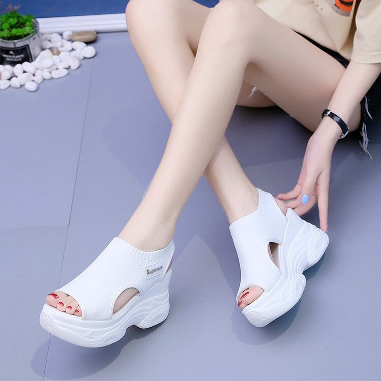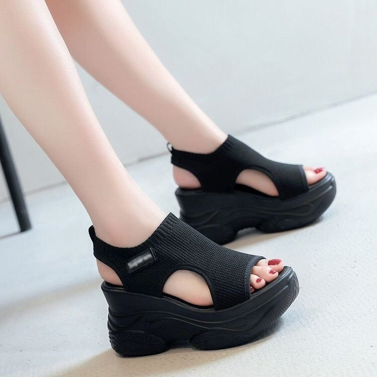 Croc summer new style flying woven thick-soled wedge fish mouth sports sandals female Korean version of the platform casual sandals