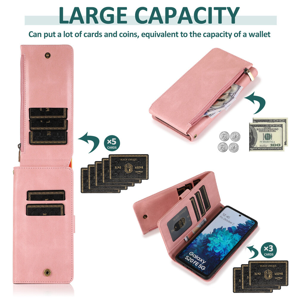 Luxury Zipper Wallet Case For Samsung Galaxy S23 S22 S21 S20 FE S10 E S9 Note 20 10 9 Ultra Plus Lite Leather Flip Card Phone Bags Cover