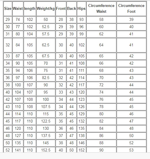 Size: 29-52