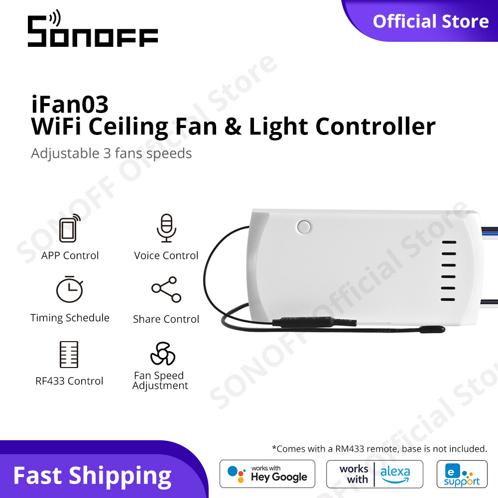 SONOFF iFan04 Smart Switch WiFi Ceiling Fan and Light Controller eWeLink APP&433MHz RF Remote Control Wireless Smart Module 3 Fan Speeds Smart Timing Control