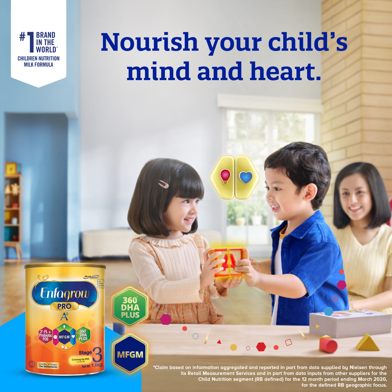 With over 100 years of experience in pediatric nutrition, Mead Johnson Nutrition has scientifically formulated Enfagrow Pro A+ Stage 3 with a unique blend of nutrients that are important for overall mental and physical development.