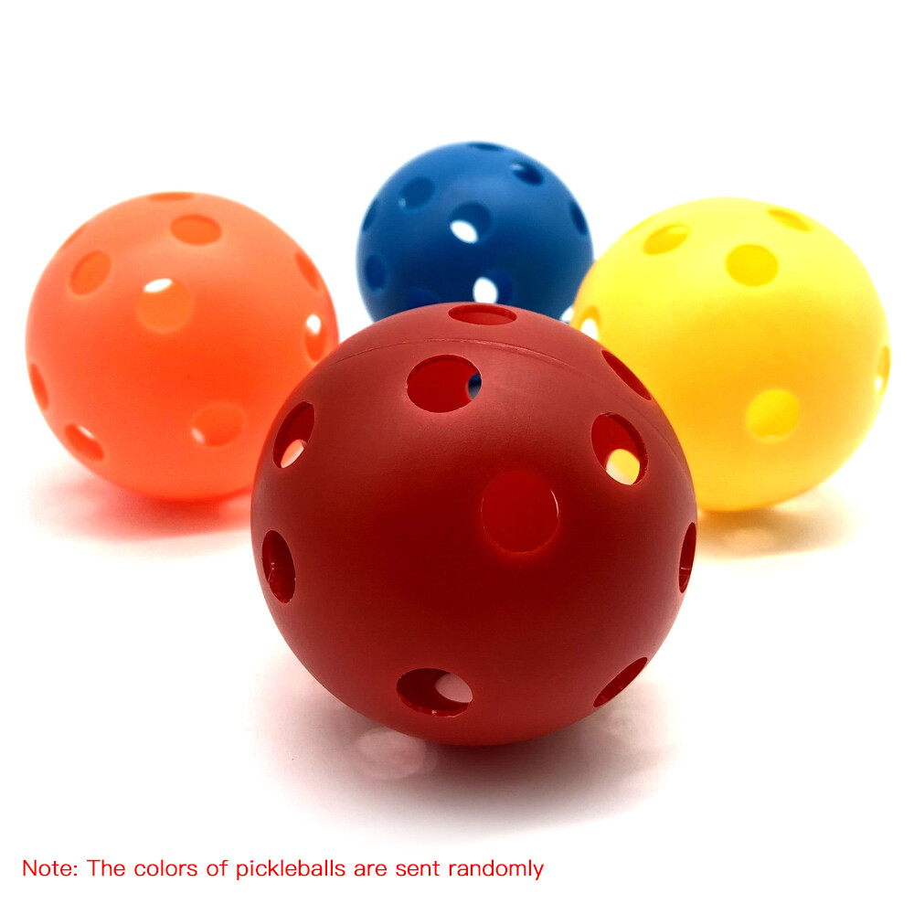 Includes 2pcs pickleball paddles and 4pcs 69mm PE plastic pickleballs. (Pickleball colors are sent randomly)