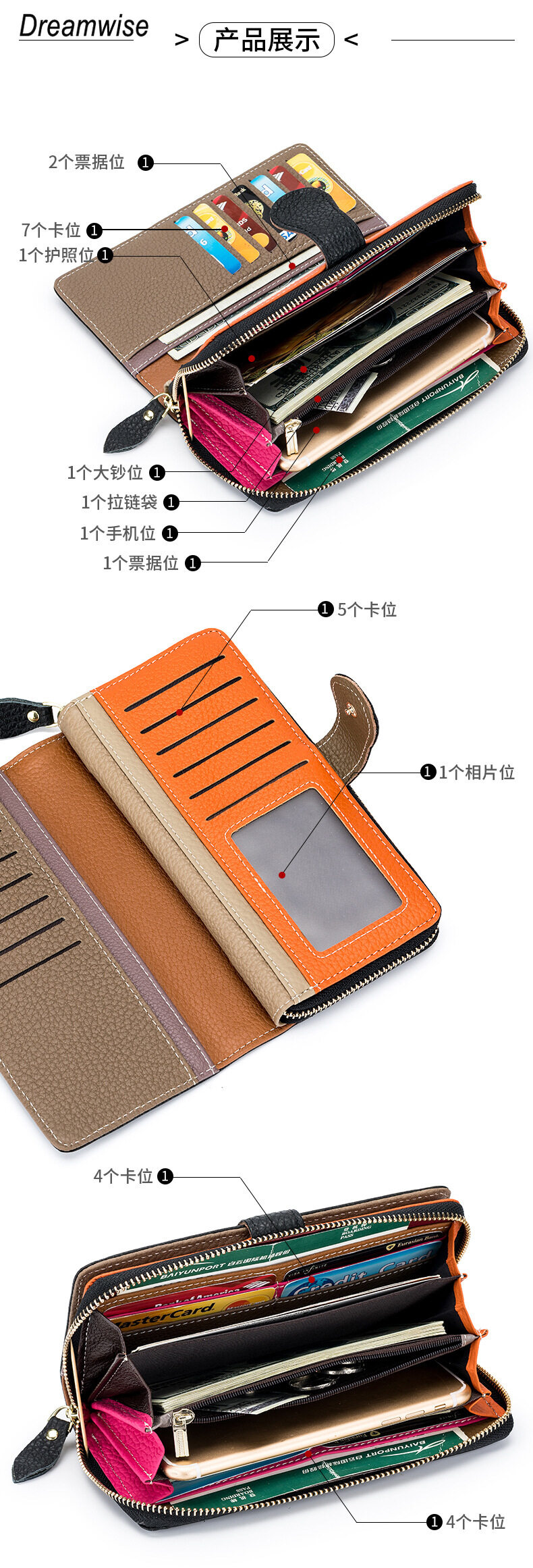 Dreamwise RFID Anti-theft Brush Long Wallets for Women New Real Soft Cowhide Clutch Coin Purse Ladies Card Holder Mobile Phone Bag