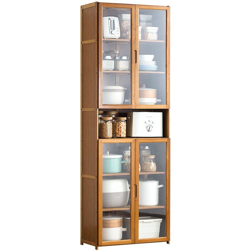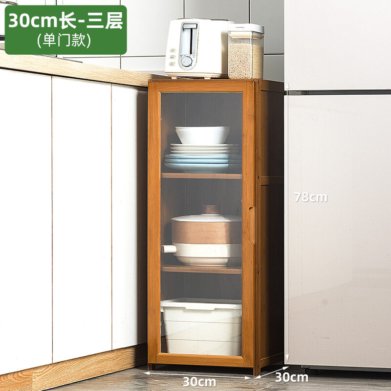 Kitchen Supplies Storage Cabinet Floor Multi-Layer Multi-Functional Storage Rack with Door Kitchenware Tableware Locker Bookshelf Wood