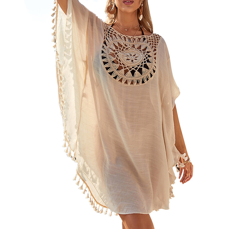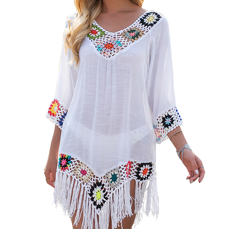 Features: V-neck, see-through, fringe, solid color, loose, crochet eyelet, hollow, stylish and unique, can help improve women's charm.