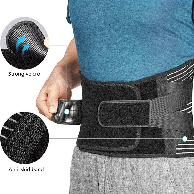 Features: [Take Pain Away Immediately]: The back brace contains 4 PP stays and 2 steel springs placed along the waist side,providing 360° stronger support to lower back,and relieving back pain caused by arthritis,disc herniation,sciatica,spinal stenosis,scoliosis,and ankylosing spondylitis,etc. [Most Breathable Air Mesh]: The Air-Mesh channels of the brace provide comfort for all-day wear even the toughest work.This back support is made of 4-way stretch tech, which is lightweight and bring you an ultimate baby-skin-like silky touch when wear it under the cloths, perfect for back surgery to restore. [Strongest Extra support]: Back support elastic straps is designed 4 times stronger stretch yarn which easily add extra compression around back, lower back pain relief for men and women while heavy lifting,long time standing or sitting,playing golf,doing housework,gardening,working,etc. [Maximum Stability]: 2 Silicone anti-skid bands are designed on the 2 sides of the waist,preventing back support from riding up when sitting, bending or doing daily activities.The wide size velcro of 2 elastic straps provide maximum stability far beyond your expectations, made of PVC material that usually used for babies clothes,will not scratch your skin or damage your clothes. Specifications: Condition: Band new Type: Back support belt Main material: SBR, Polyester fiber Color: Black Style: Basic, Upgrade Size: As shown (Approx.) Package includes: 1x Back support belt