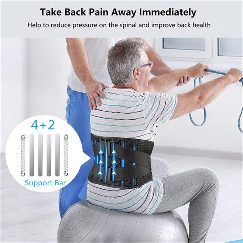 Breathable Air Mesh Back Brace for Men Women Lower Back Pain Relief with 6 Stays Back Support Belt Anti-skid Lumbar Support for Sciatica Scoliosis