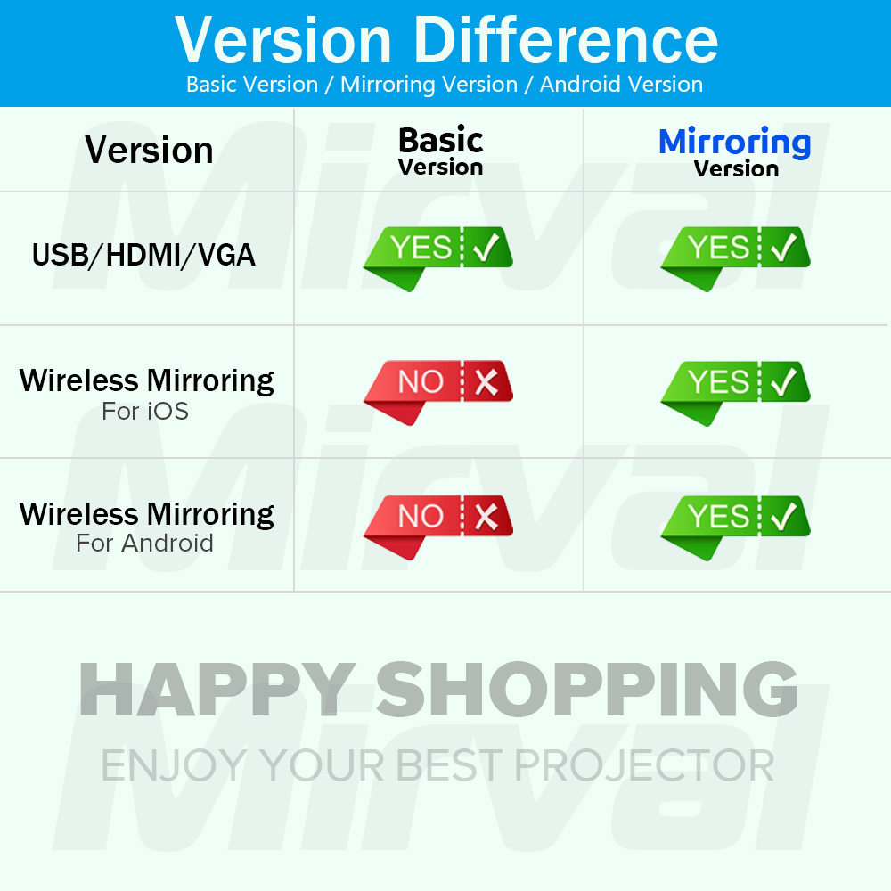 Mirval T300 LED Portable Mini Projector WiFi Wireless Mirroring For Phone LCD HD Home Support HDMI USB Personal Cinema Projectors