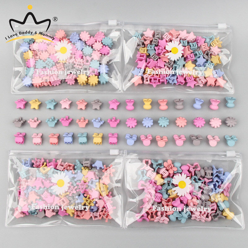 30Pcs/Bag Mini Cute Hair Claws Clips For Girls Baby Colorful Hairpin Cartoon Rabbit Flower Crown Star Hair Clips Children Clamp
