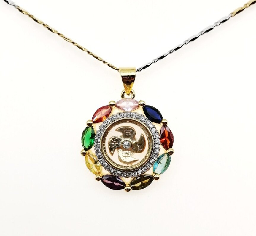Thai Lucky Windmill wheel Amulet Powerful Enhance Good Fortune adjustable Gold Silver Necklace