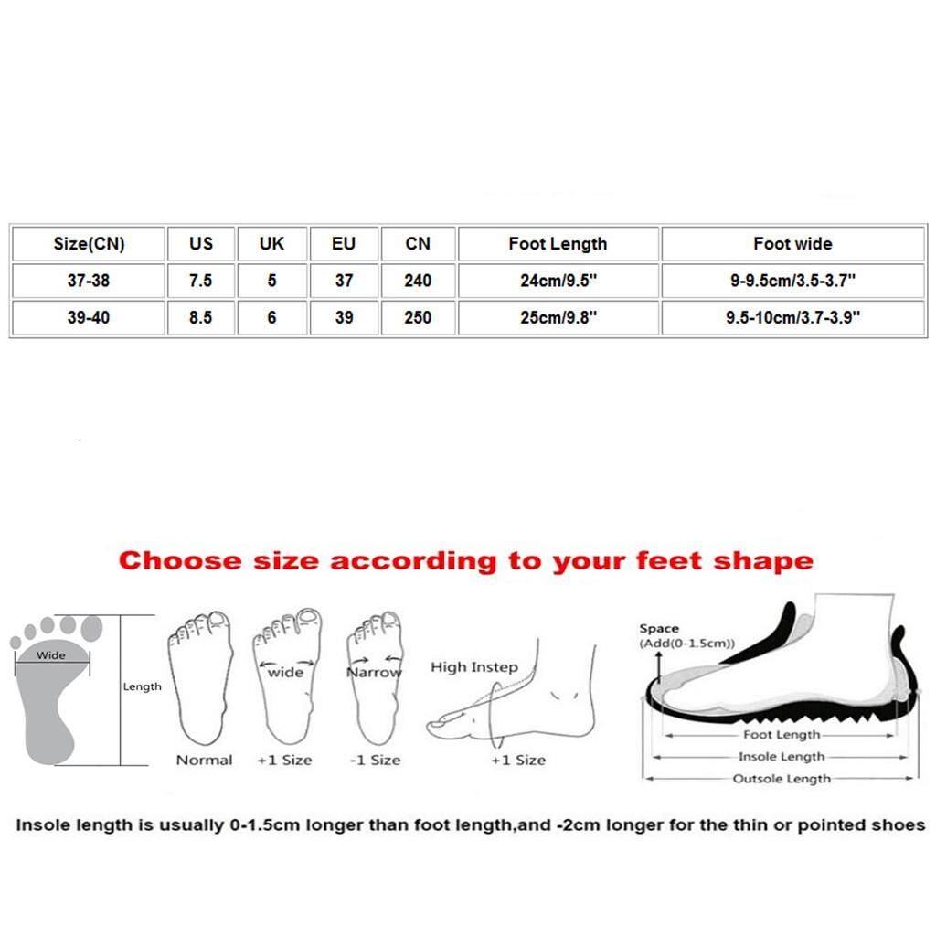 Size(CN) :37-38 US:7.5 UK:5 EU:37 CN:240 Foot Length :24cm/9.5" Foot wide :9-9.5cm/3.5-3.7"