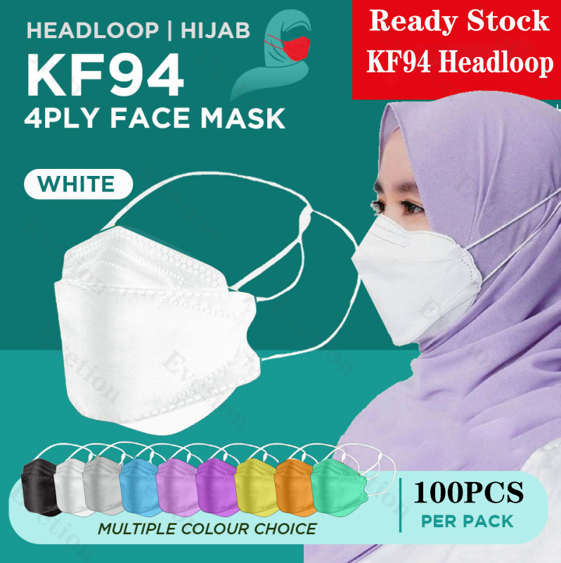 Evetion Kf94 50/100pcs Hijab Headloop FaceMask Korean Adult Mask 3D Design Reusable Masks for Flu Prevention 4-layer Protective Non-woven Fabric Meltblown Cloth High-quality Mask Comfortable to Wear i