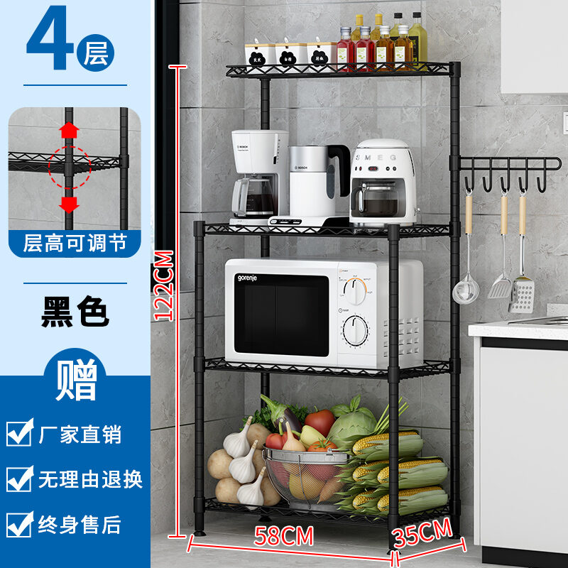 Kitchen Storage Rack Floor-Standing Multi-Layer Microwave Oven Stainless Steel Storage Shelf Bathroom Living Room Storage Rack