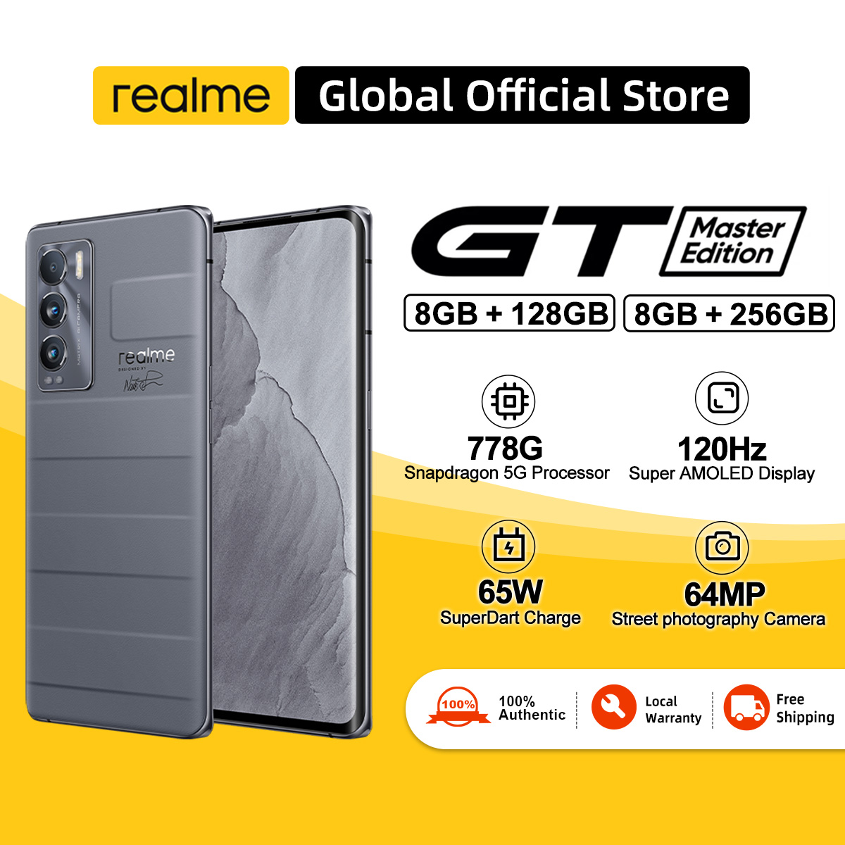 realme GT Master Edition(8+128GB/8+256GB) Snapdragon 778120Hz Super AMOLED Display, 65W SuperDart Charge Global version Local two-years warranty Smartphone