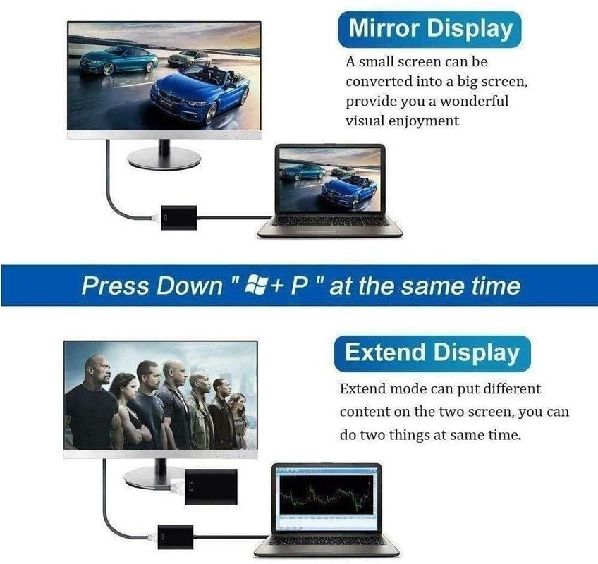 • 【USB to VGA adapter】will be connected to a PC or laptop with a USB 3.0 / 2.0 port to connect to a high -definition TV, projector or display with a VGA port to get the second screen. VGA cables are sold separately. This adapter is compatible with Windows XP, Windows 7, Windows 8 / 8.1, Windows 10.