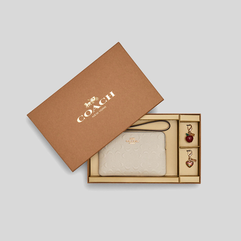 Coach Boxed Corner Zip Wristlet In Signature Leather C6879 Chalk