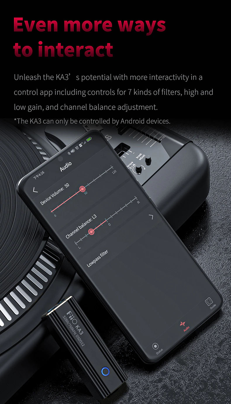 >FiiO KA3 isn't limited to any particular platform or device. It supports multiple platforms including Android smartphones, tablets, iOS devices, Windows PC's/Laptops, MAC devices. You don't need to install any software or application to use the KA3, though using it with the FiiO Music application or FiiO Control application you can access multiple settings on the KA3.
