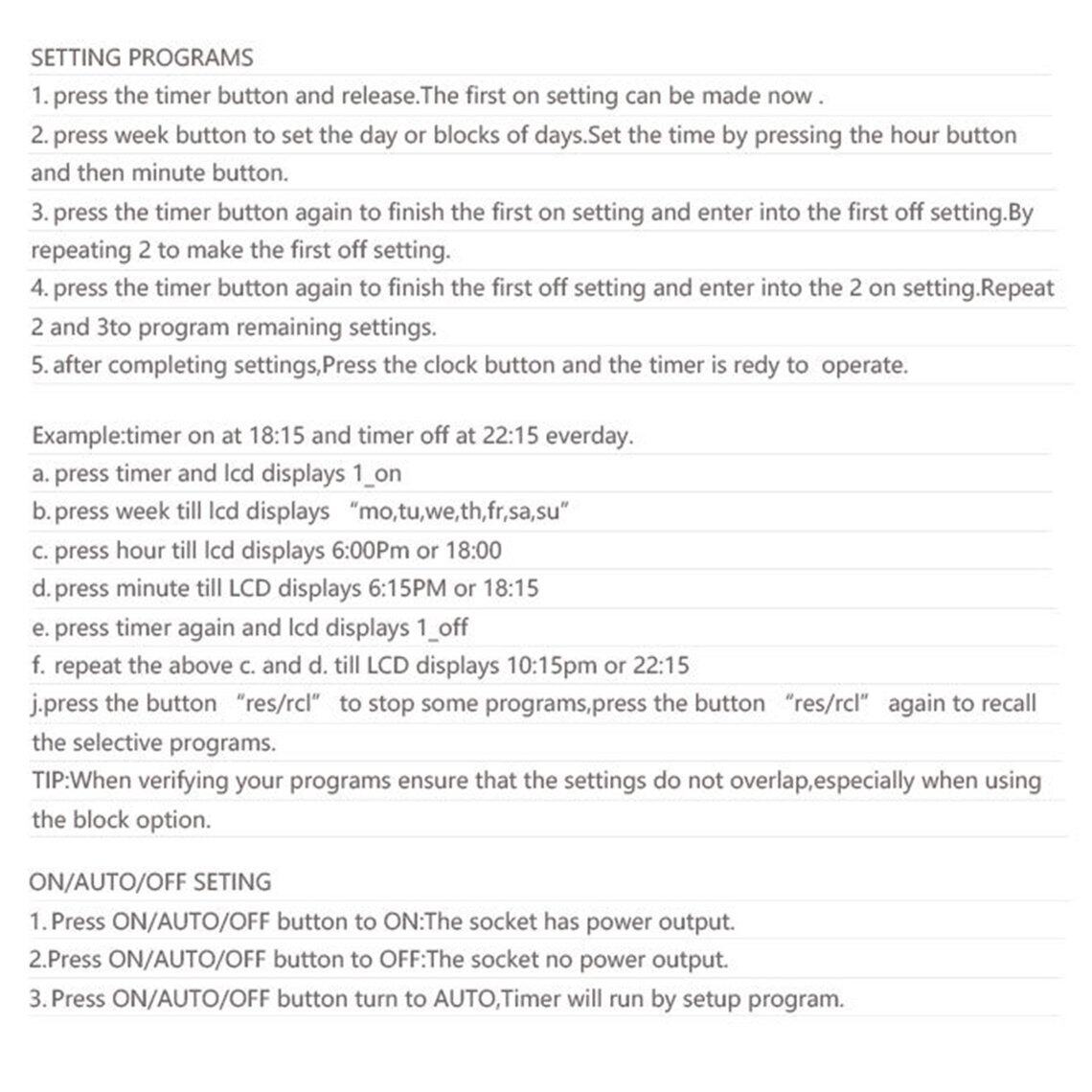 5. Max Load: 10 ( 2 ) A MAX 2300W, number Of Programs is 16 ( 20 ) Times.