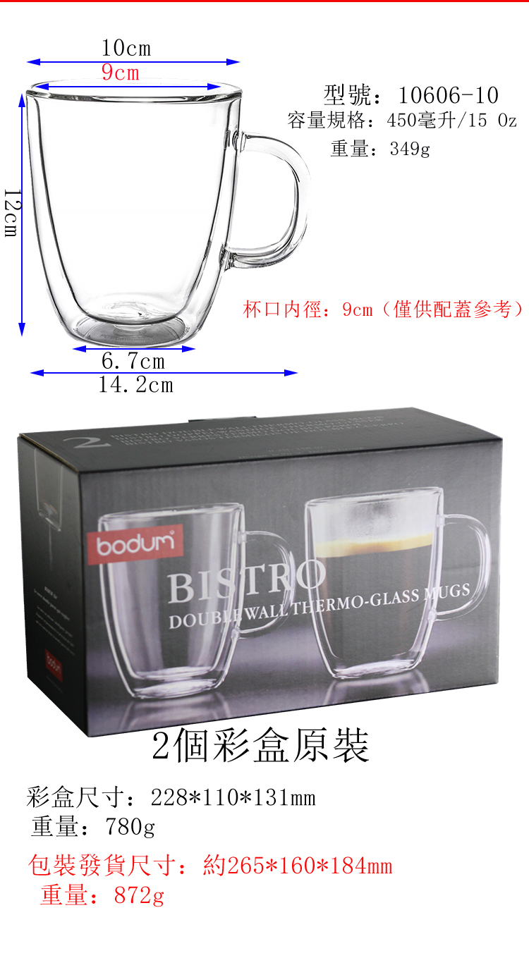 Bodum Microwave Safe Glass Cup Coffee Cup Mugs Double Wall Glass Mug for Cappuccino Latte Espresso Coffee, hot&cold beverage safe, borosilicate glasses milk tea juice cup