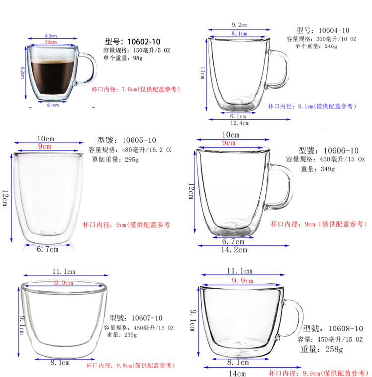 Material: heat resistant glass(borosilicate glass) Capacity: 80ml / 250ml /350ml Applications: hot drinks, Milk,Coffee,Water,Tea,Beer,Juice,Wine Package include: 2pc x glass cup Feature: Eco-Friendly #glasscup #doublewallscup #cuteup #coffeecup If you have any problem,please contact us (10:00~22:00)