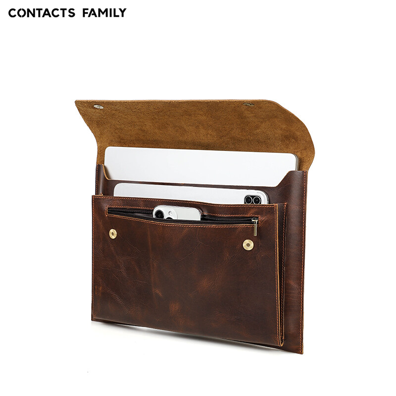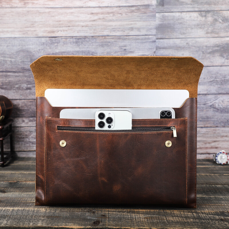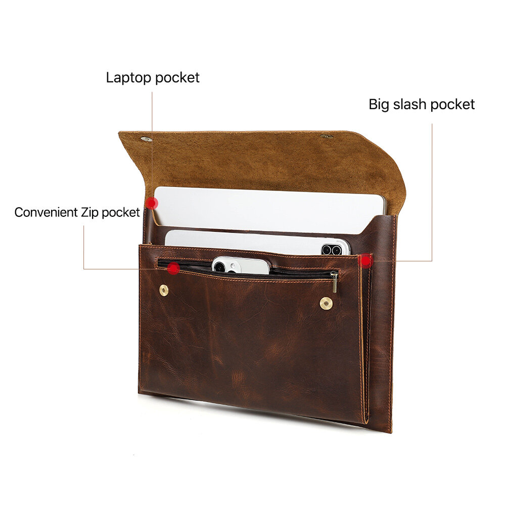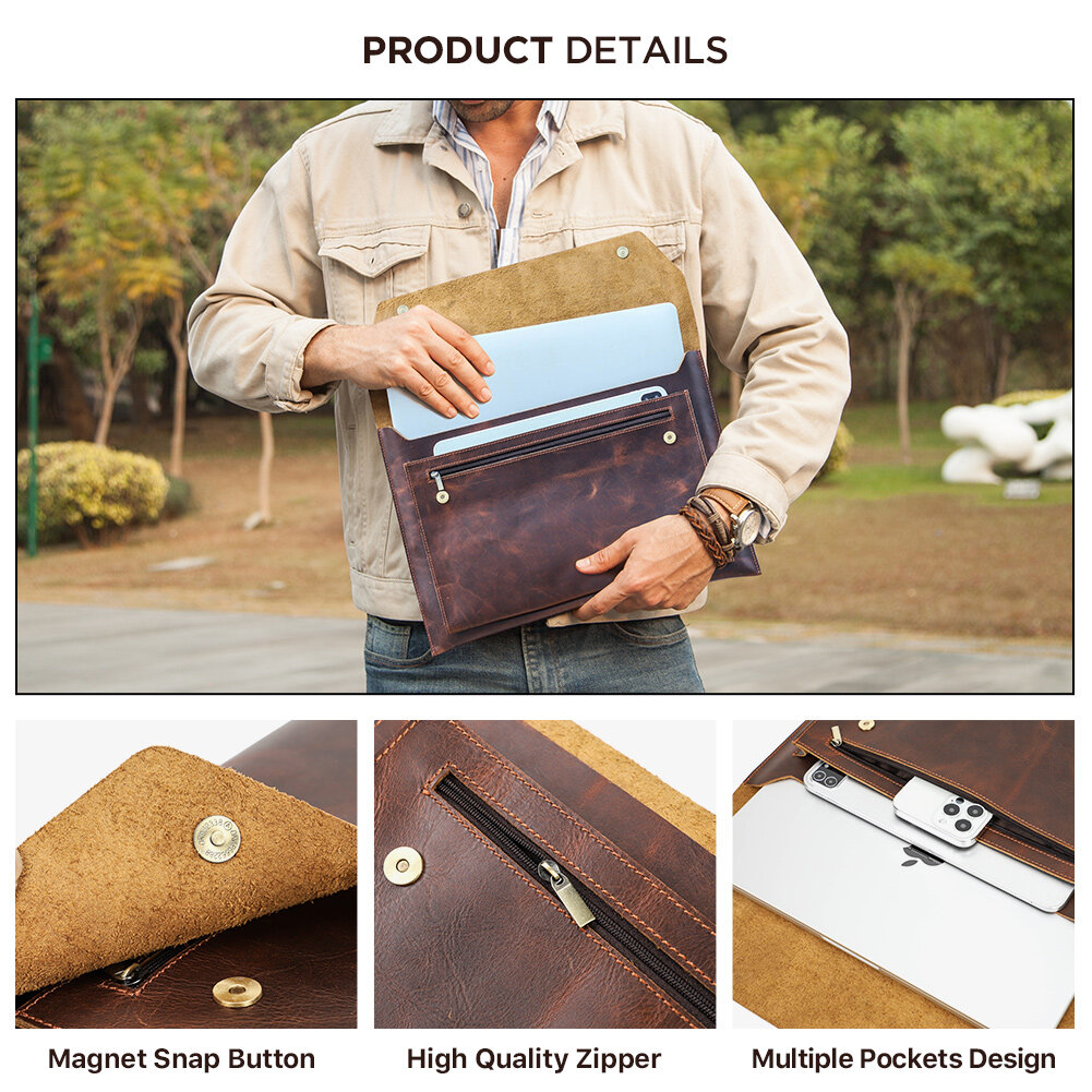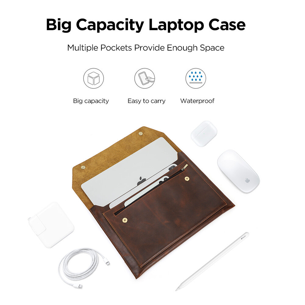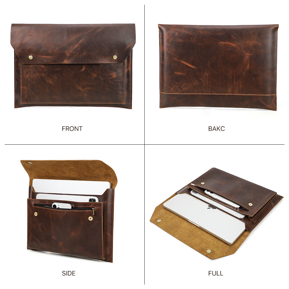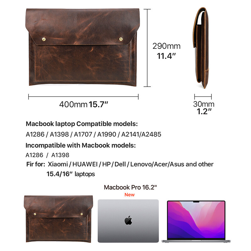 Genuine Leather Laptop Bag For Macbook pro 14.2/16.2 inch Case 2021 Macbook Air /pro 13 15 Sleeve Magnetic Button