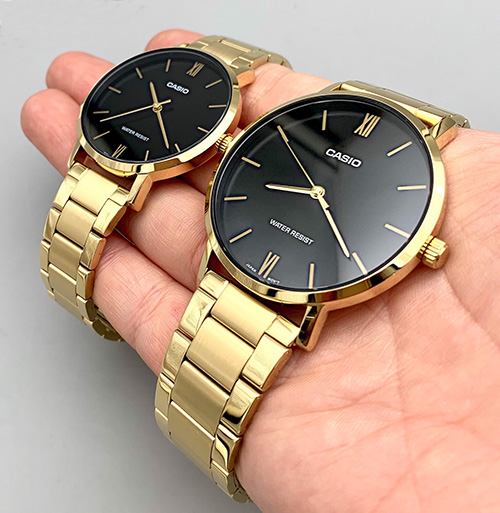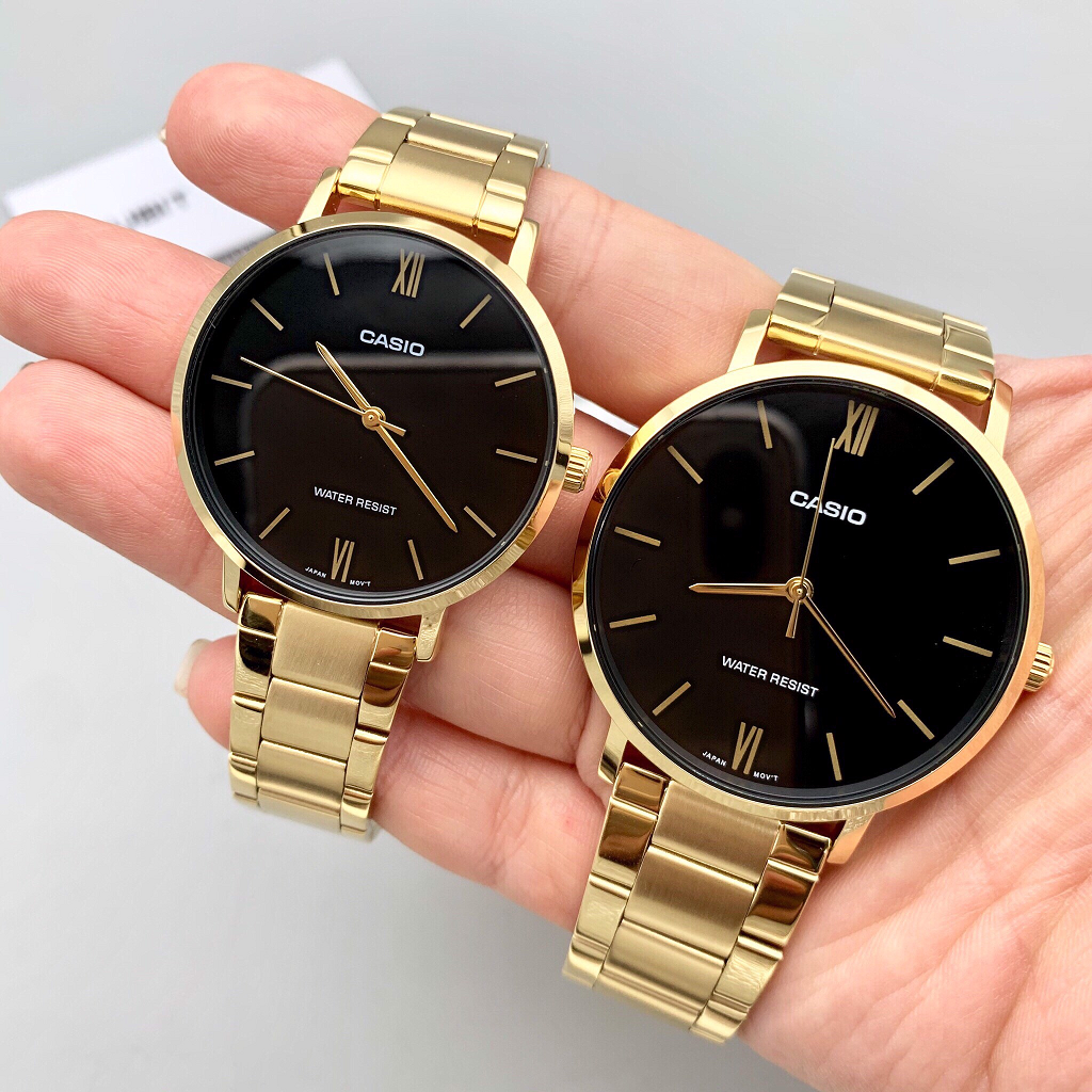 [Vinstore] Casio Couple Watch Set Gold Tone Stainless Steel Black Dial Men Women Watch LTP-VT01G-1B MTP-VT01G-1B