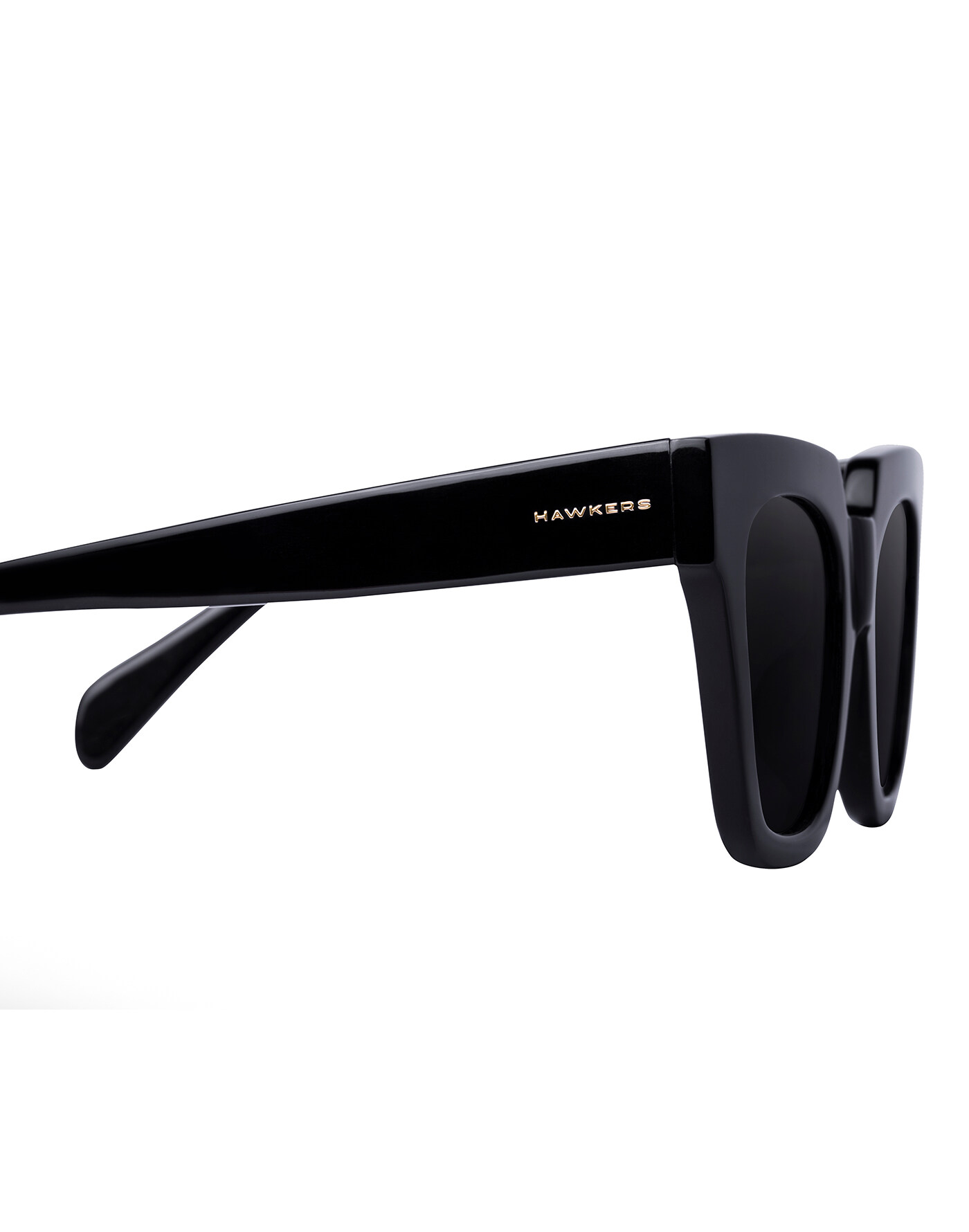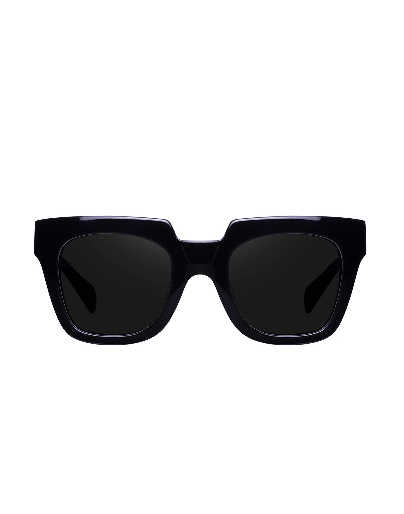Square, black frame with polished finish and black lenses