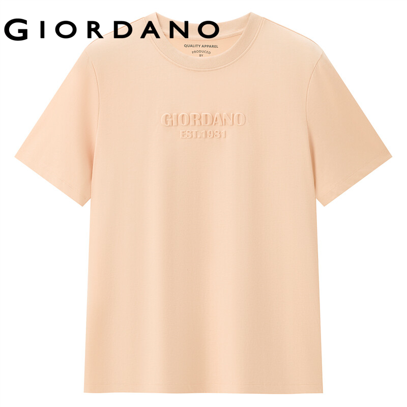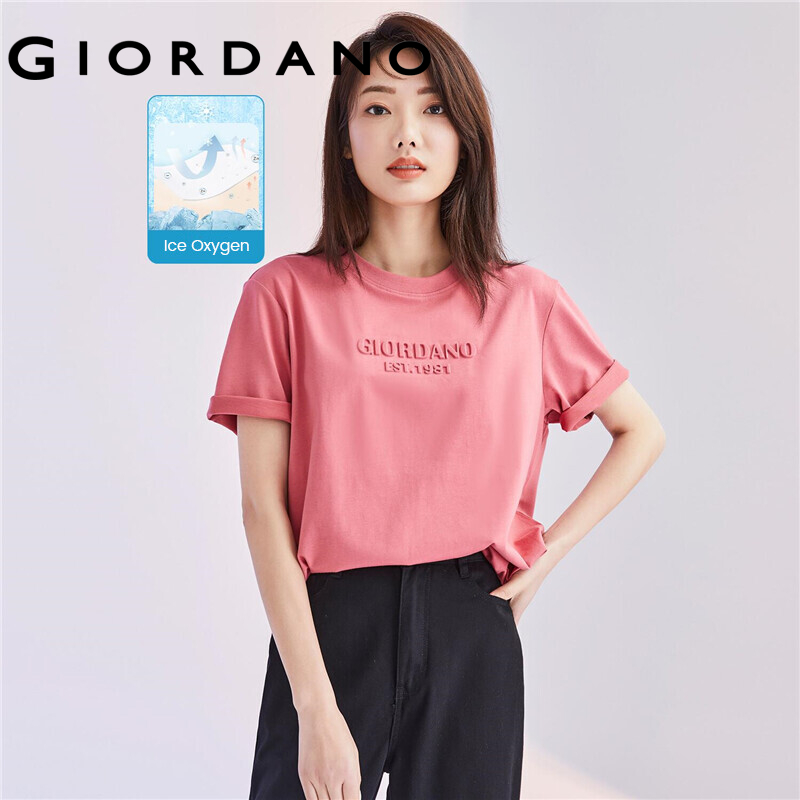 GIORDANO Women T-Shirts High-Tech Ice Oxygen Bar Crewneck Letter Embossed Casual Tee Short Sleeve Summer Basic T-Shirts 05322399