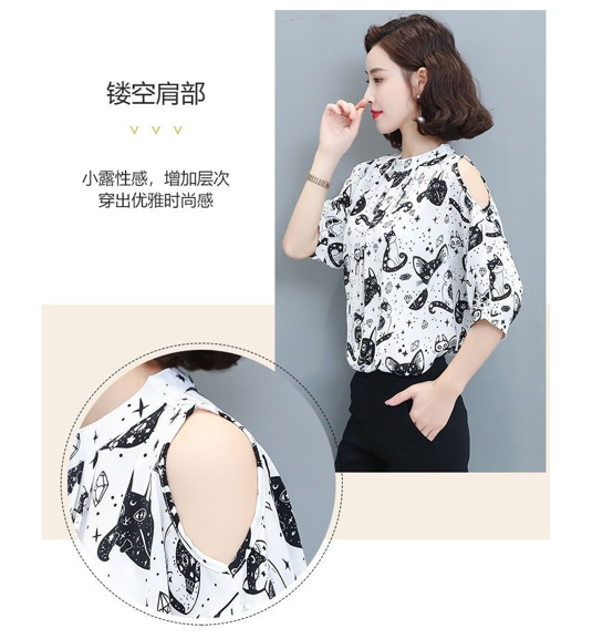 EDQRDQ Women's Off The Shoulder Chiffon Blouses Summer 3/4 Sleeves Animal Printed Tops Shirts