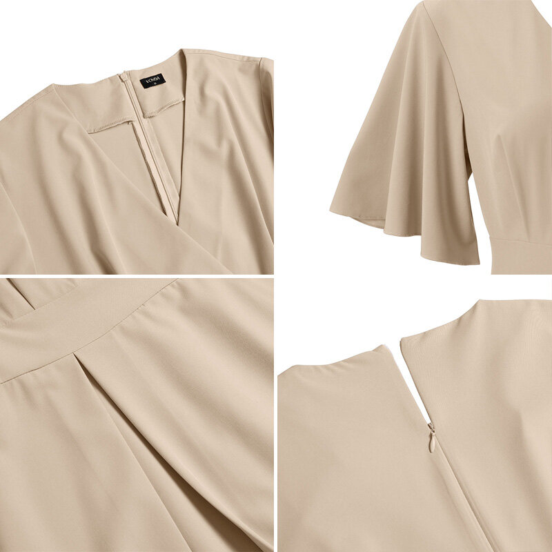 Features: Pleating,Pagoda Sleeve,V-Necked