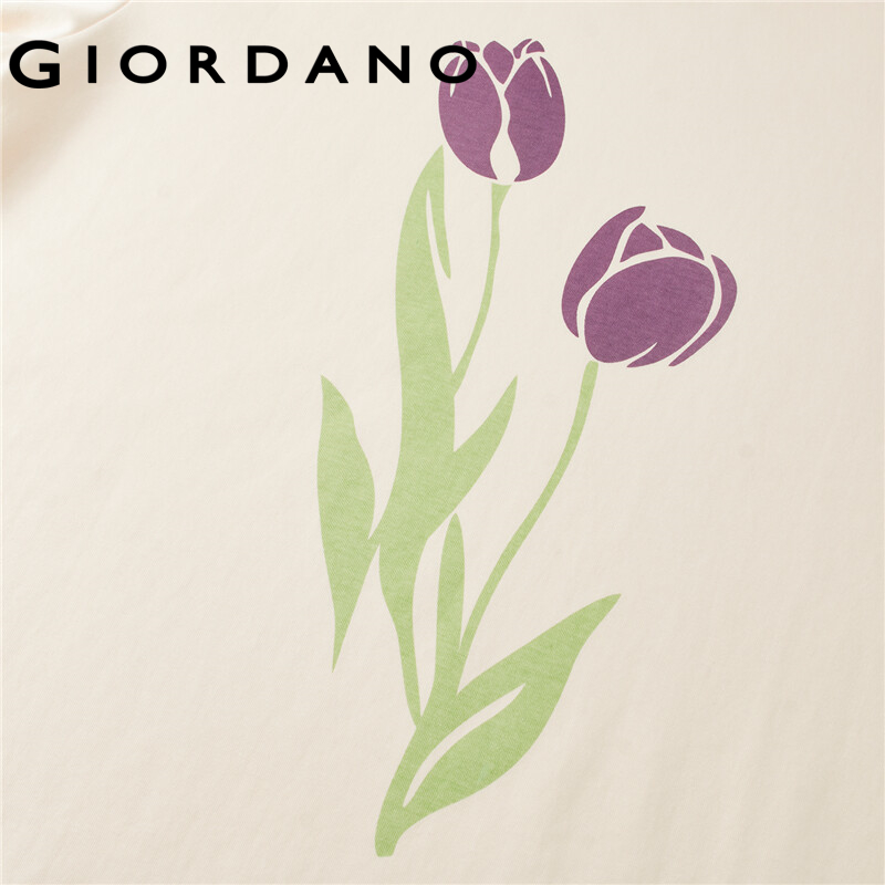 GIORDANO Women T-Shirts Tulips Flower Print Oversize Loose Casual T-Shirts Crewneck Short Sleeve Summer Relaxed Tee 18322602